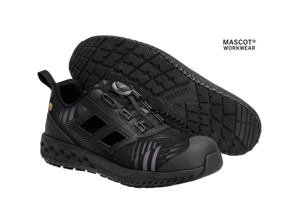 Predná časť topánky sa pružne ohýba s chodidlom. Zvršok z odolnej tkaniny. Vonkajší materiál je priedušný a ľahko odvádza teplo a vlhkosť od chodidla. Otvára sa a zapína pomocou systému BOA® Fit, ktorý sa skladá z otočného kolieska, šnúrky a vodítok. Kompozitná špička. Ochrana nechtov zo špeciálneho textilného materiálu. Mäkká a pružná stielka tlmiaca nárazy. Vložky sú odnímateľné. Medzipodrážka Phylon. Vhodné na prácu na kolenách. Podrážka vyrobená z gumy s extrémnou protišmykovosťou. Podrážka je odolná voči olejom a benzínu. ESD schválené podľa EN IEC 61340-4-3: 2018, EN 61340-5-1: 2016.