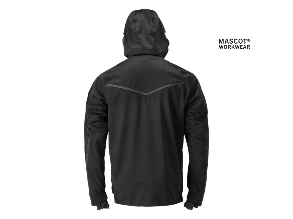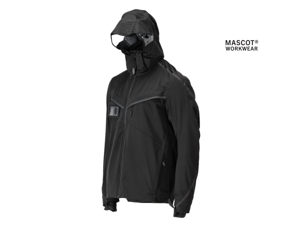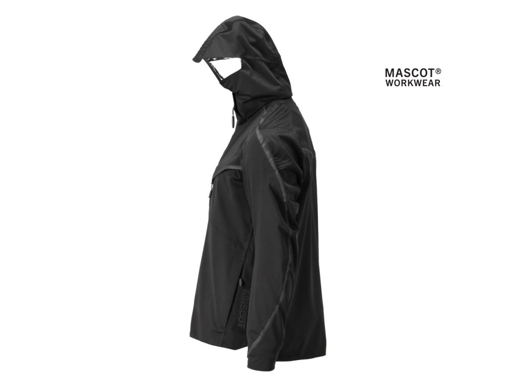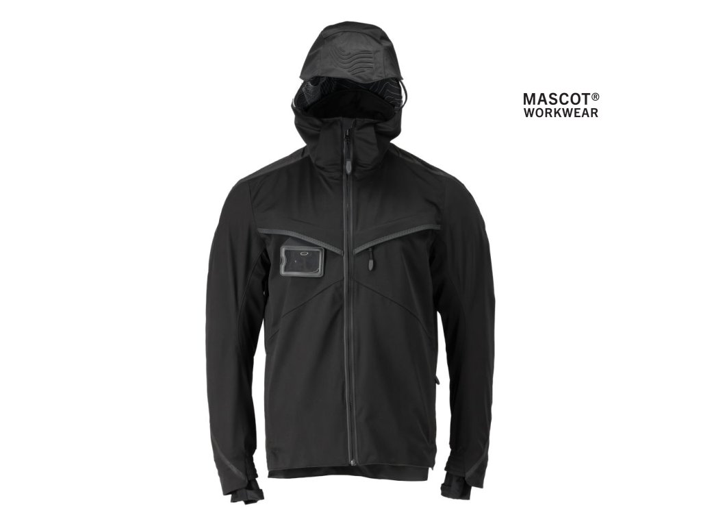 ULTIMÁTNE ELASTICKÁ tkanina, ktorá je ľahká. Priedušná, vetruodolná a vodeodolná. Podlepené švy. Zapínanie na zips a vnútorná chlopňa. Odnímateľná podšitá kapucňa. Kapucňa má po stranách priehľadný plast. Vysoký golier. Náprsné vrecko na zips. Predné vrecká na zips. Odnímateľné puzdro na preukaz totožnosti. Ergonomicky tvarované rukávy umožňujú veľkú slobodu pohybu. Vnútorné vrecká. Guma na manžetách. Rebrované manžety (skryté v chlopni). Otvory na palce na manžetách. Predĺžený chrbát. Zips v spodnej časti chrbta na potlač/výšivku loga. Reflexné prvky.
