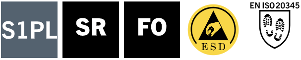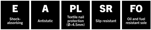 Hlavný materiál - polyamid. Predná časť topánky sa pružne ohýba spolu s chodidlom. Vonkajší materiál vyrobený z tkaniny odolnej proti opotrebovaniu. Priedušný vrchný materiál umožňuje ľahko odvádzať vlhkosť a teplo od chodidiel. Zapínanie a rozopínanie pomocou systému BOA® Fit, ktorý sa skladá z gombíka, šnúry a háčikov. Kompozitná špička. Ochrana proti prepichnutiu tkaniny MASCOLAYER®. Podrážka tlmiaca nárazy, mäkká a pružná. Vložky sú vymeniteľné. V medzipodrážke je Phylon vložka. Obuv je vhodná na prácu v kľačiacej polohe. Odolná podrážka je vyrobená z gumy s extrémnou protišmykovou odolnosťou. Podrážka odolná voči olejom a benzínu. Schválené podľa ESD, EN IEC 61340-4-3:2018, EN 61340-5-1:2016.