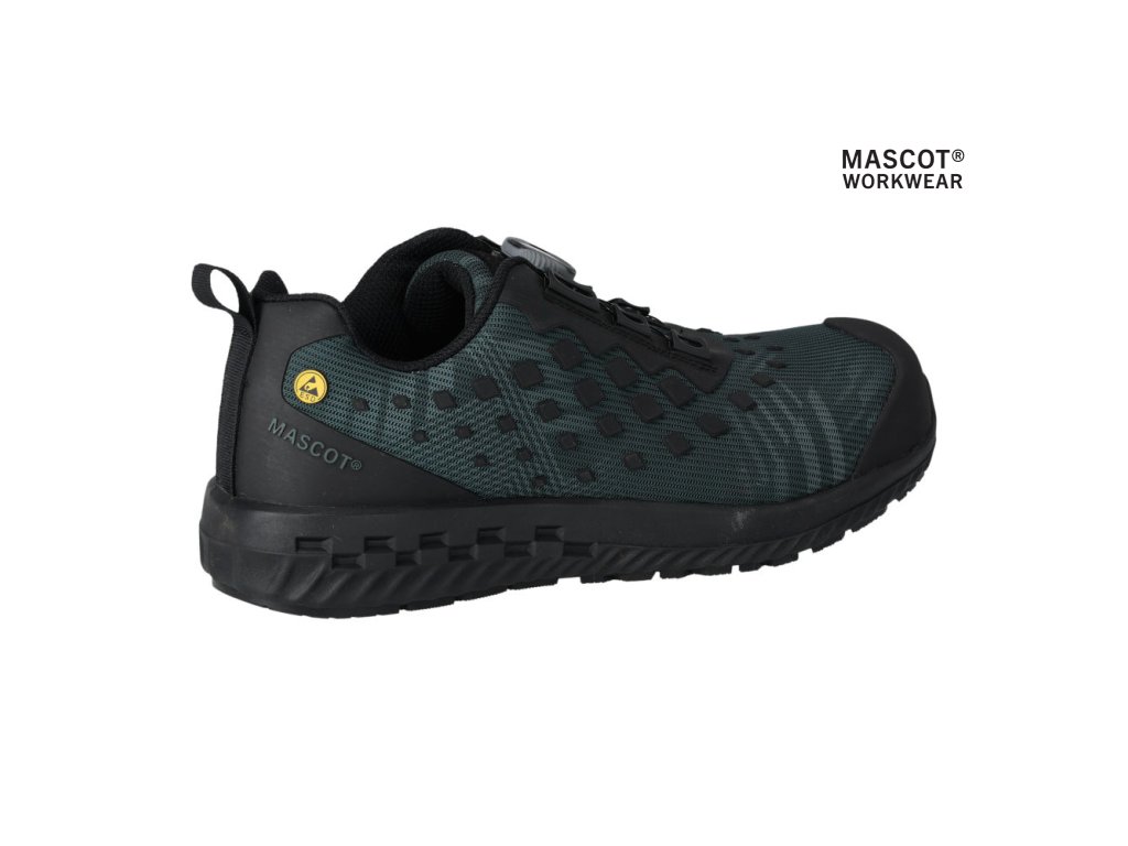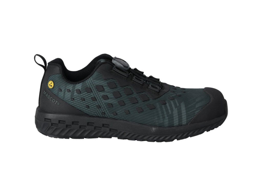 Hlavný materiál - polyamid. Predná časť topánky sa pružne ohýba spolu s chodidlom. Vonkajší materiál vyrobený z tkaniny odolnej proti opotrebovaniu. Priedušný vrchný materiál umožňuje ľahko odvádzať vlhkosť a teplo od chodidiel. Zapínanie a rozopínanie pomocou systému BOA® Fit, ktorý sa skladá z gombíka, šnúry a háčikov. Kompozitná špička. Ochrana proti prepichnutiu tkaniny MASCOLAYER®. Podrážka tlmiaca nárazy, mäkká a pružná. Vložky sú vymeniteľné. V medzipodrážke je Phylon vložka. Obuv je vhodná na prácu v kľačiacej polohe. Odolná podrážka je vyrobená z gumy s extrémnou protišmykovou odolnosťou. Podrážka odolná voči olejom a benzínu. Schválené podľa ESD, EN IEC 61340-4-3:2018, EN 61340-5-1:2016.