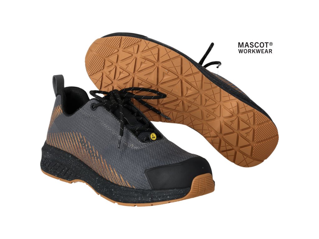 Hlavný materiál - textil. Predná časť topánky sa pružne ohýba s chodidlom. Zvršok z odolnej tkaniny. Zapínanie na šnúrky. Kompozitná špička. Textilná ochrana nechtov. Ochrana proti prepichnutiu tkaniny MASCOLAYER®. Mäkká a pružná stielka tlmiaca nárazy. Vložky sú odnímateľné. Ľahká a pružná medzipodrážka EVA tlmiaca nárazy. TPU vystuženie päty. Vystuženie špičky z TPU. Vonkajšia podrážka z PU. Podrážka je odolná voči olejom a benzínu. ESD schválené podľa EN IEC 61340-4-3: 2018, EN 61340-5-1: 2016.