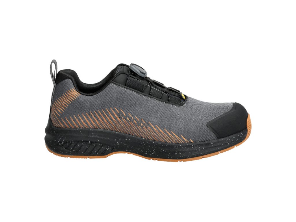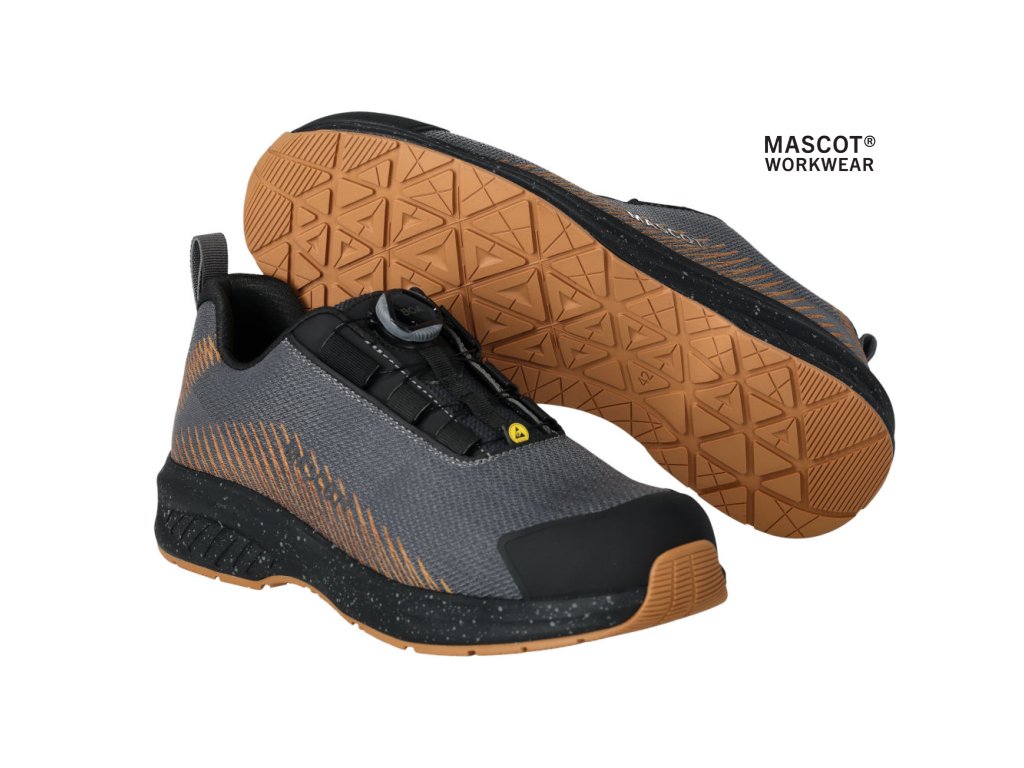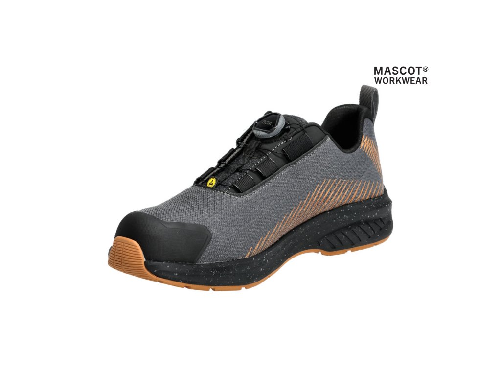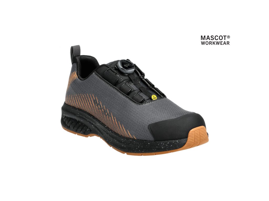 Hlavný materiál - textil. Predná časť topánky sa pružne ohýba spolu s chodidlom. Vonkajší materiál vyrobený z tkaniny odolnej proti opotrebovaniu. Zapínanie a rozopínanie pomocou systému BOA® Fit, ktorý sa skladá z gombíka, šnúry a háčikov. Kompozitná špička. Ochrana proti prepichnutiu tkaniny MASCOLAYER®. Vložky sú vymeniteľné. Ľahká, mäkká a pružná medzipodrážka EVA tlmiaca nárazy. TPU vystuženie päty. Vystuženie špičky z TPU. PU podrážka. Podrážka odolná voči olejom a benzínu. Schválené podľa ESD, EN IEC 61340-4-3:2018, EN 61340-5-1:2016.