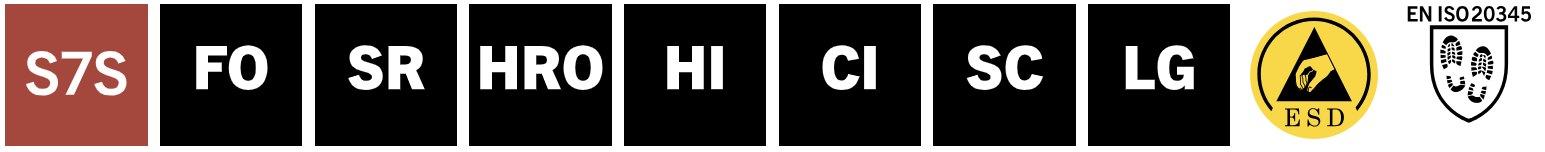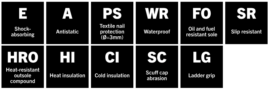 - Protišmyková a tepelne odolná (do 300 °C kontaktné teplo) podrážka, s drážkami pre bezpečné státie na rebríkoch. Zaisťuje dobrú priľnavosť na klzkom povrchu.