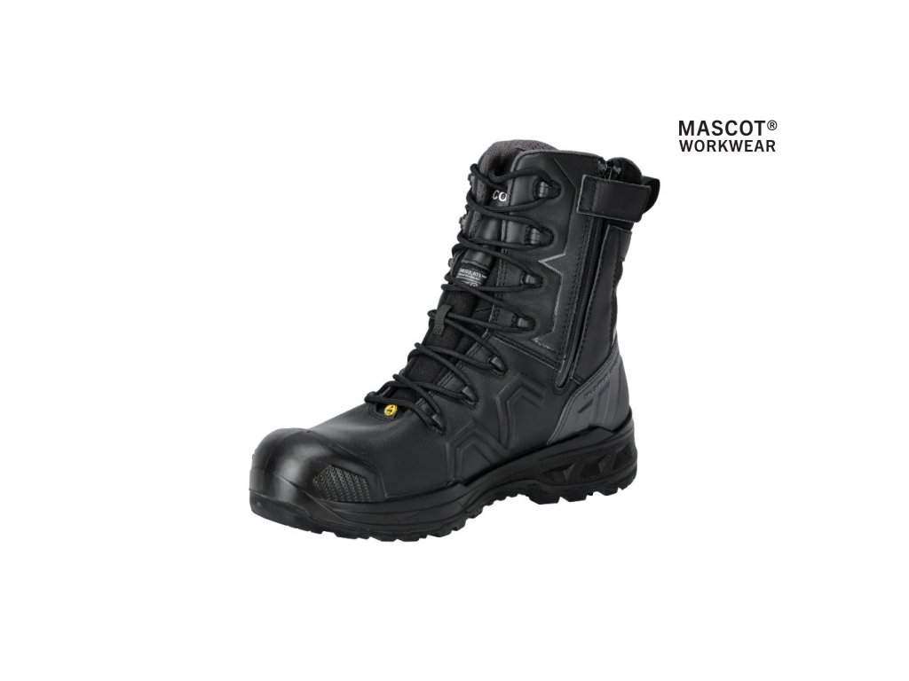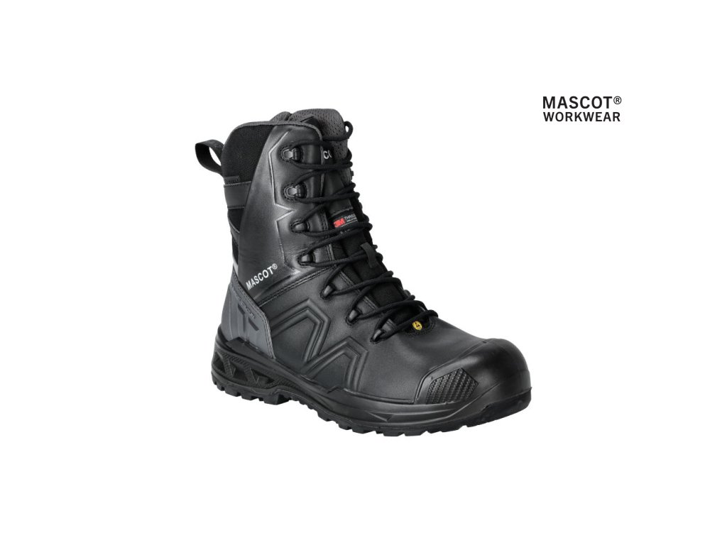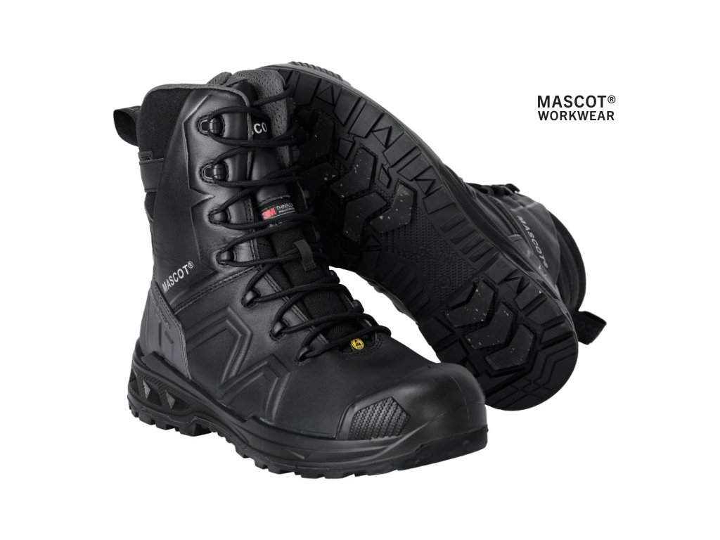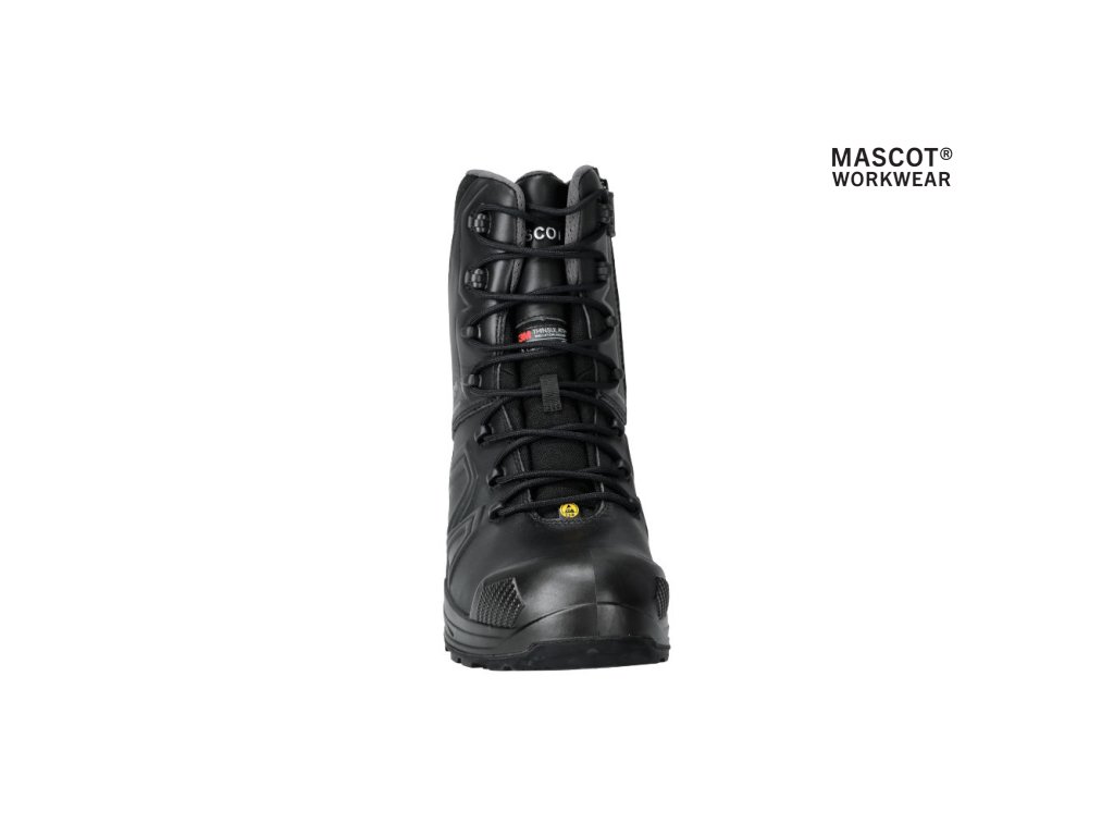 Hlavný materiál - celozrnná koža. Viazanie na šnúrky. Ergonomicky tvarovaná hliníková špička. Medzipodrážka z PU. Gumová podrážka s gumovými vložkami. Odnímateľné, odolné antistatické vložky. Účinne absorbuje a odvádza vlhkosť. Tvarovaná výstuž špičky z TPU proti odieraniu. Podrážka je odolná voči olejom a benzínu. Tepelne odolná podrážka do kontaktného tepla 300 °C. Rebríková priľnavosť. Stielka tlmiaca nárazy. Izolačná vložka Thinsulate™. Nepremokavá membrána vyrobená z látky MASCOTEX®. Nepremokavý a priedušný vonkajší materiál. Sú vhodné aj na prácu v kľaku. Ochrana päty. ESD schválené podľa EN IEC 61340-4-3: 2018, EN 61340-5-1: 2016.