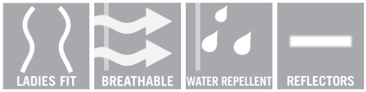 Moderný dámsky strih. Priedušné. Vode odpudivé. Ľahká izolácia CLIMASCOT®. Vysoký golier. Zapínanie na zips. Náprsné vrecko na zips. Predné vrecká na zips. Vnútorné vrecko. Elastický otvor na ramenách. Nastaviteľná elastická šnúrka v páse. Strečová tkanina po stranách a na hrudi. Reflektory.