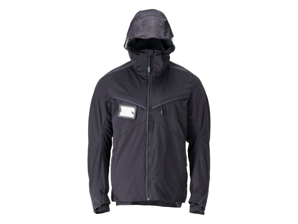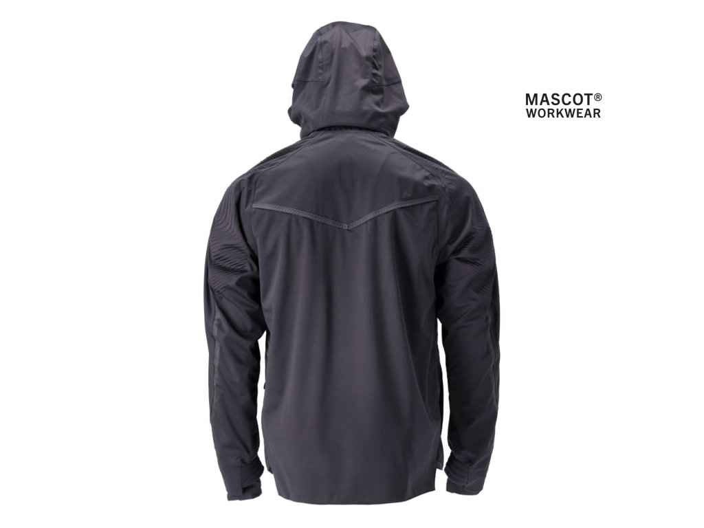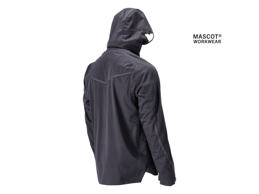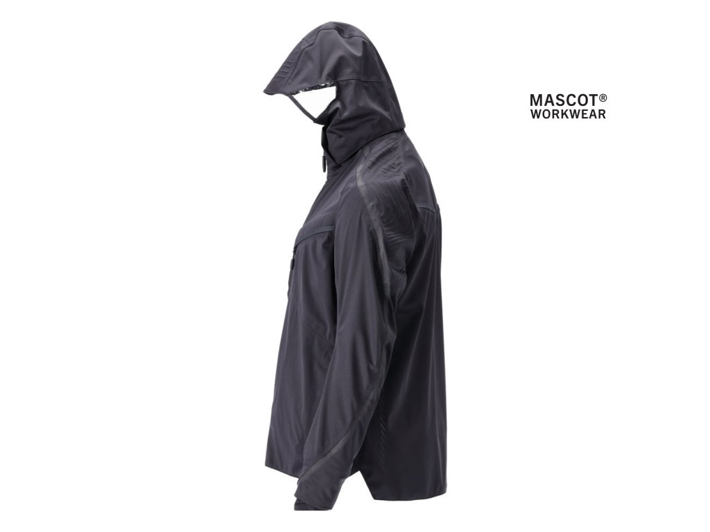 ULTIMÁTNE ELASTICKÁ tkanina, ktorá je ľahká. Priedušná, vetruodolná a vodeodolná. Podlepené švy. Zapínanie na zips a vnútorná chlopňa. Odnímateľná podšitá kapucňa. Kapucňa má po stranách priehľadný plast. Vysoký golier. Náprsné vrecko na zips. Predné vrecká na zips. Odnímateľné puzdro na preukaz totožnosti. Ergonomicky tvarované rukávy umožňujú veľkú slobodu pohybu. Vnútorné vrecká. Guma na manžetách. Rebrované manžety (skryté v chlopni). Otvory na palce na manžetách. Predĺžený chrbát. Zips v spodnej časti chrbta na potlač/výšivku loga. Reflexné prvky.