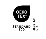 - Výrobok je certifikovaný podľa štandardu OEKO-TEX® STANDARD 100 inštitútom DTI, číslo certifikátu 2576-431
