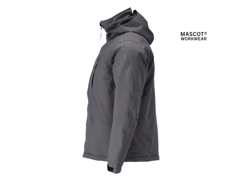 Pružná tkanina. Priedušná, vetruodolná a vodeodolná. Podlepené švy. Ľahká izolácia CLIMASCOT®. Zapínanie na zips a vnútornú chlopňu. Odnímateľná podšitá kapucňa. Vysoký golier. Vnútorné náprsné vrecko na zips. Náprsné vrecká na zips. Predné vrecká. Ergonomicky tvarované rukávy umožňujú veľkú slobodu pohybu. Zapínanie na suchý zips na manžetách. Predĺžený chrbát. Zips v spodnej časti chrbta na potlač/výšivku loga. Reflexné prvky. Nastaviteľná elastická šnúrka v páse.