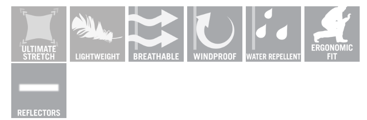 ULTIMÁTNE ELASTICKÁ tkanina, ktorá je ľahká. Priedušná, vetruodolná a vodeodolná. Podlepené švy. Ľahká izolácia CLIMASCOT®. Zapínanie na zips a vnútornú chlopňu. Odnímateľná podšitá kapucňa. Kapucňa má po stranách priehľadný plast. Vysoký golier. Náprsné vrecko na zips. Predné vrecká na zips. Odnímateľné puzdro na preukaz totožnosti. Ergonomicky tvarované rukávy umožňujú veľkú slobodu pohybu. Vnútorné vrecká. Guma na manžetách. Rebrované lemovanie (skryté v chlopni) na manžetách. Otvory na palce na manžetách. Predĺžený chrbát. Zips v spodnej časti chrbta na potlač/výšivku loga. Reflexné prvky.